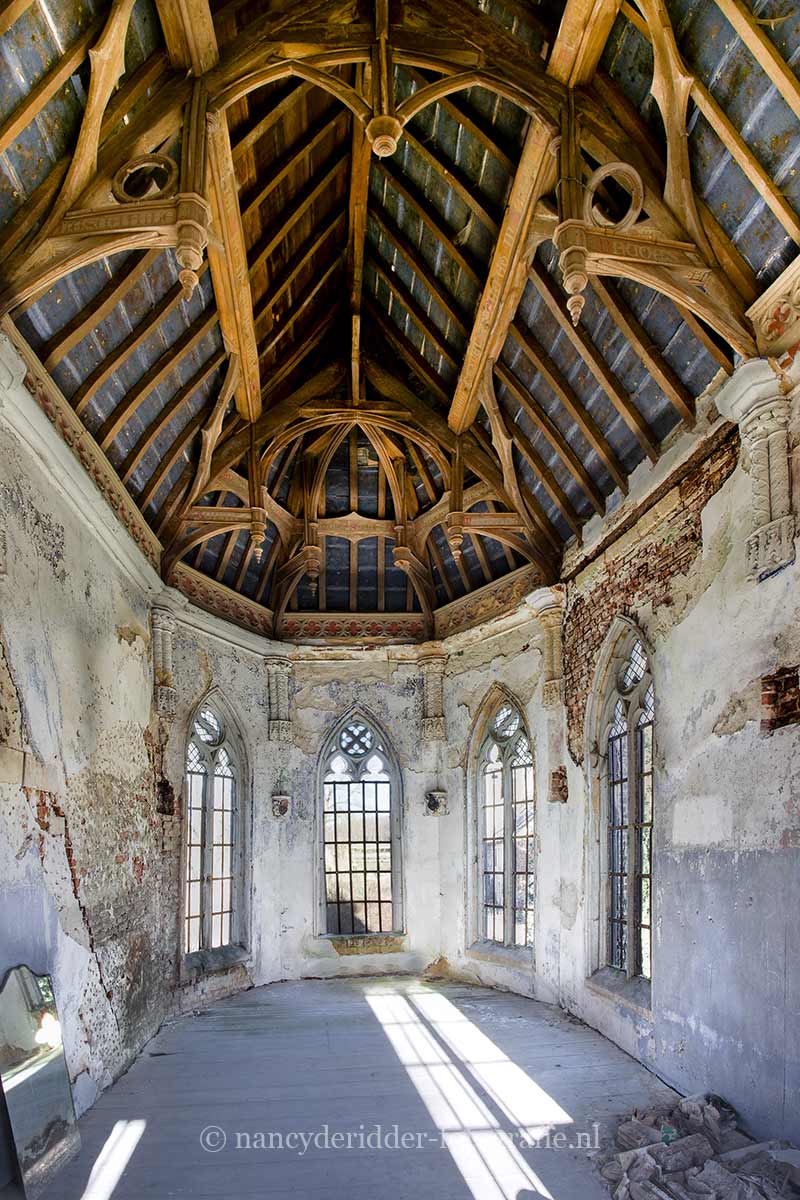 In België staat dit leuke kasteeltje, genaamd Chateau Hogemeijer. Chateau Hogemeijer ligt er vreselijk bij, de meeste trappen binnen zijn afgebroken dus je kan niet eens meer naar boven om bij de verschillende vertrekken te komen. Er is echter nog 1 trap redelijk intact en deze zijn we dan ook uiterst voorzichtig opgegaan, want ja je weet maar nooit.