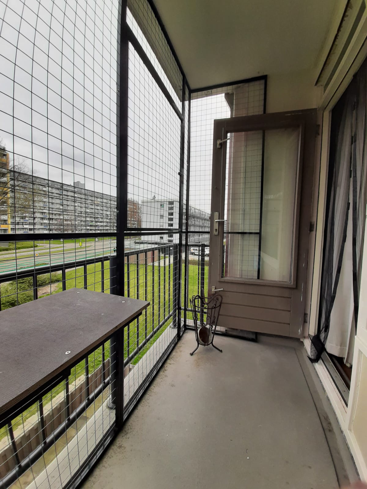Voor hetzelfde bedrag wat ik kwijt zou zijn om het zelf te maken ben ik nu dus in het bezit van een kattenren die nieuw gewoon rond de 1500 euro kost. Goede deal toch ?? De panelen moesten wel ingekort worden maar dit was gelukkig niet zo’n moeilijke klus. Zogezegd zo gedaan….binnen een dag stonden de nieuwe panelen vastgeschroefd op het balkon. Ik had vooraf al aan de woningbouw vereniging gevraagd of ik in het plafond van het balkon mocht boren, en dat was geen probleem.