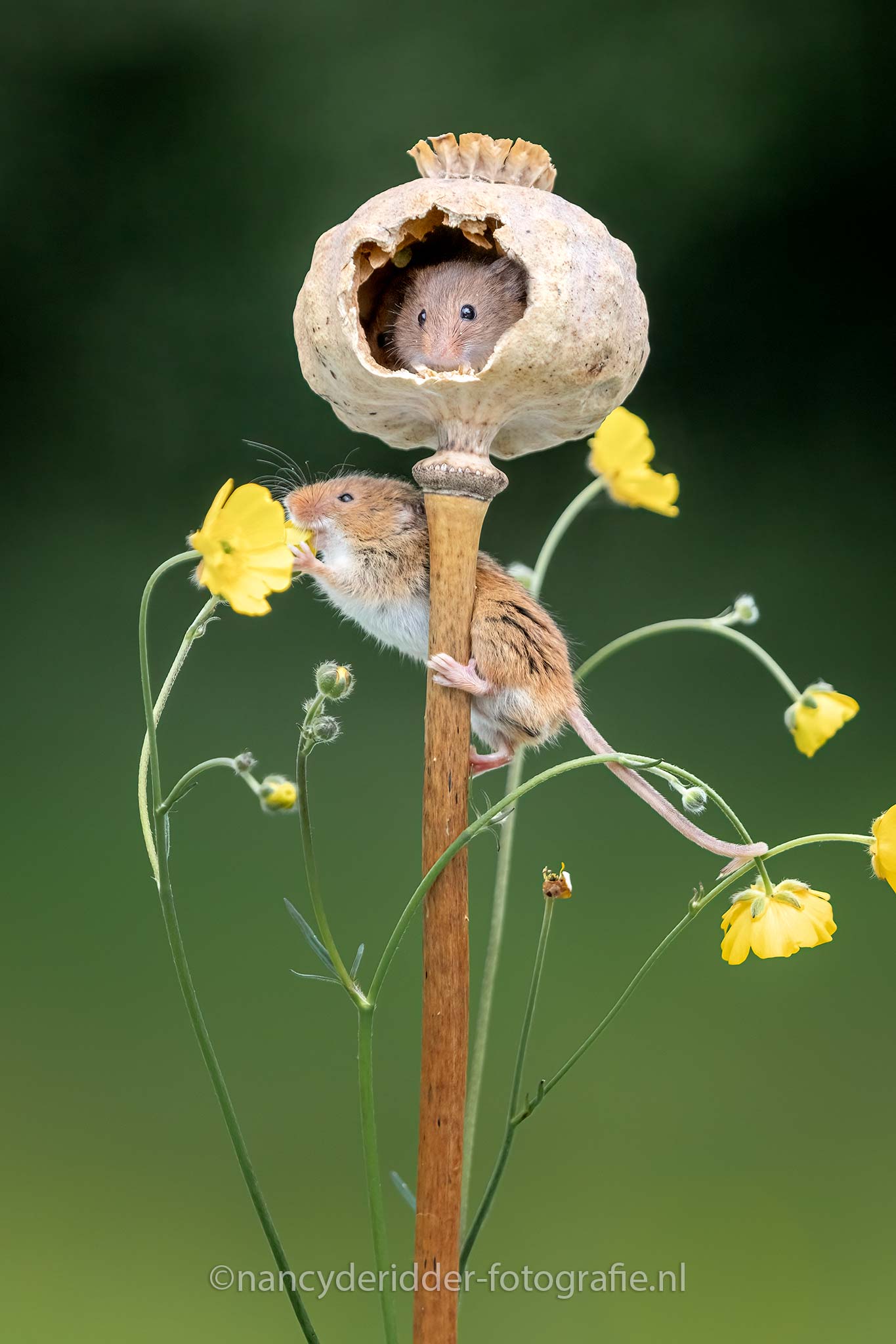 Verstoppertje spelen, de onderste muis had echter meer aandacht voor een bloemetje….