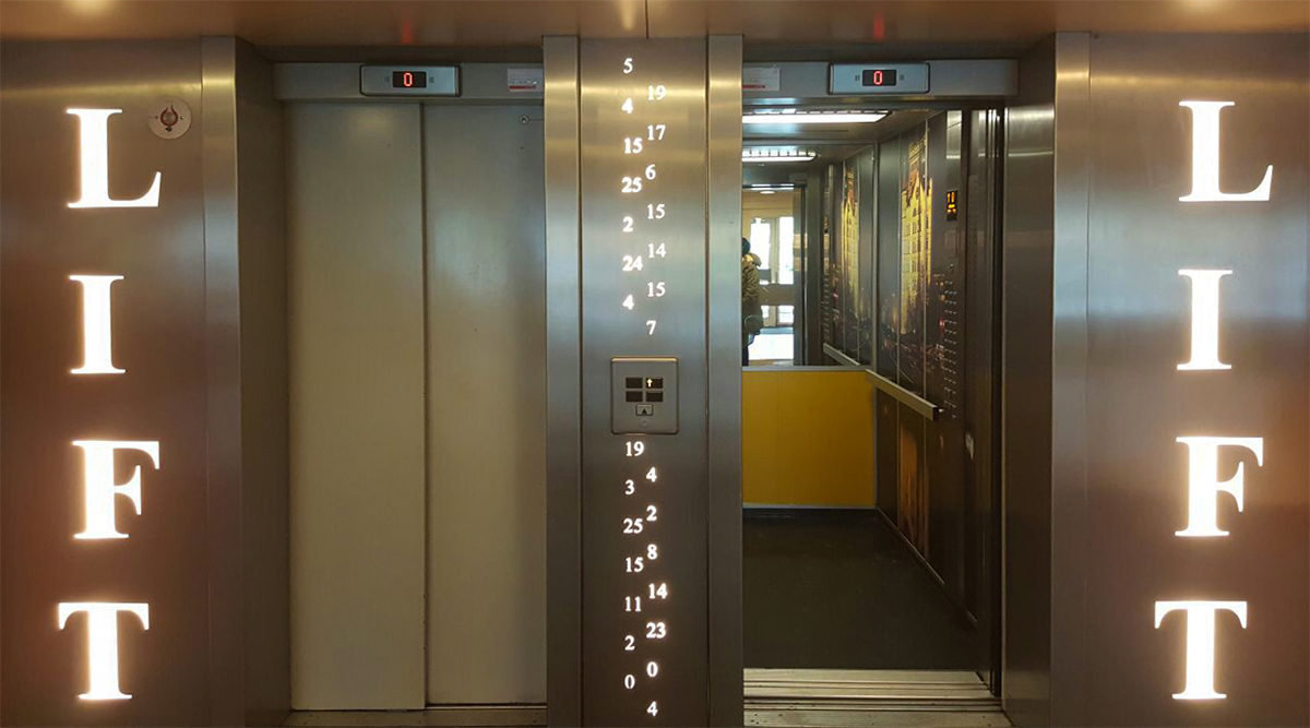 In het Weena gebouw in Rotterdam hebben ze de skyline van Rotterdam gebruikt als achterwand van de liften. Er zijn 2 liften in het Weena gebouw, elke lift heeft zijn eigen Rotterdamse skyline.