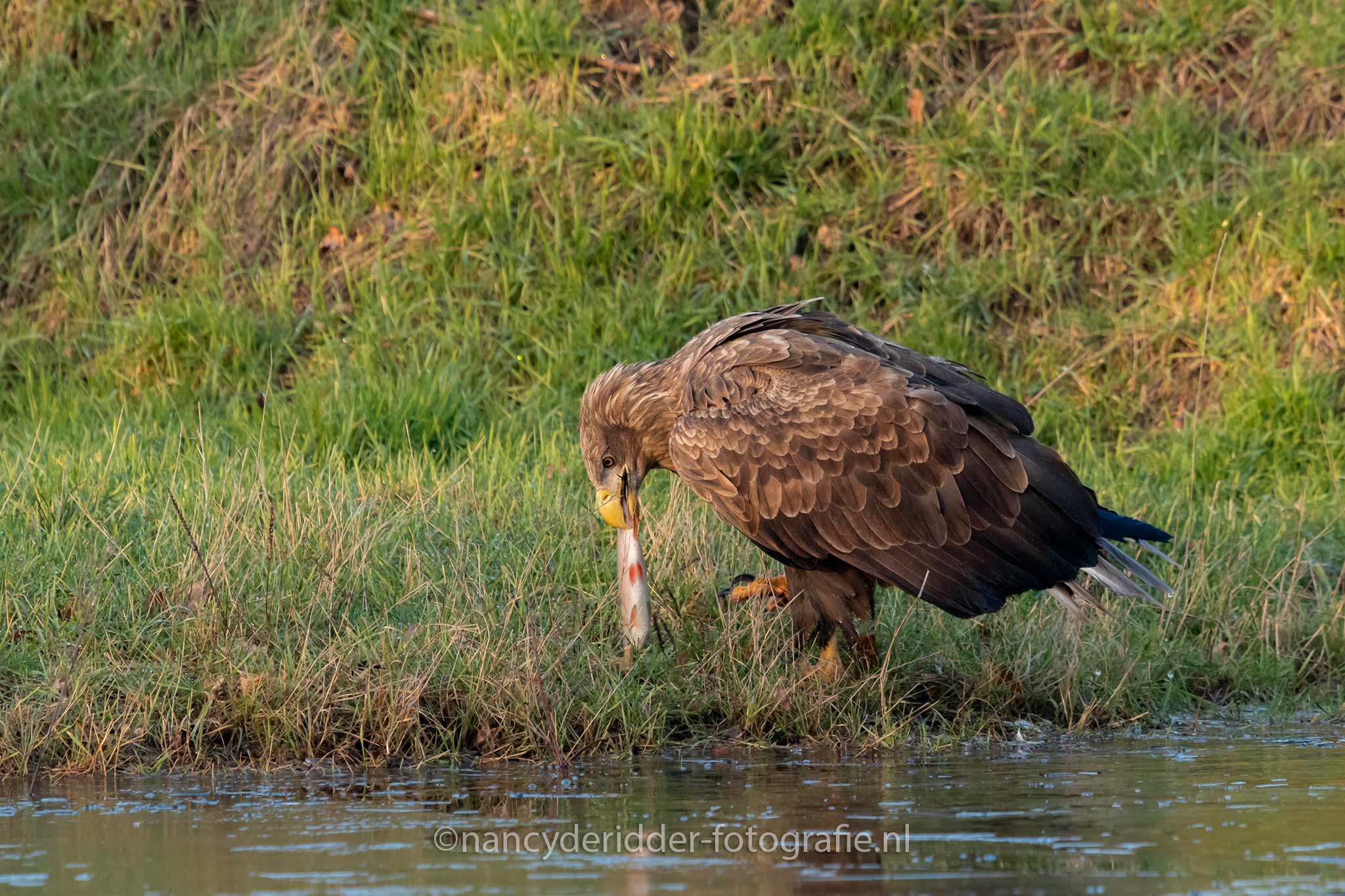Tja en toen was daar de Europese Zeearend. Al waggelend kwam hij aangelopen met zijn grote klauwen en zijn enorme snavel. Wat een indrukwekkende vogel is het toch. Ongelooflijk eigenwijs is ie ook heb ik mij laten vertellen.