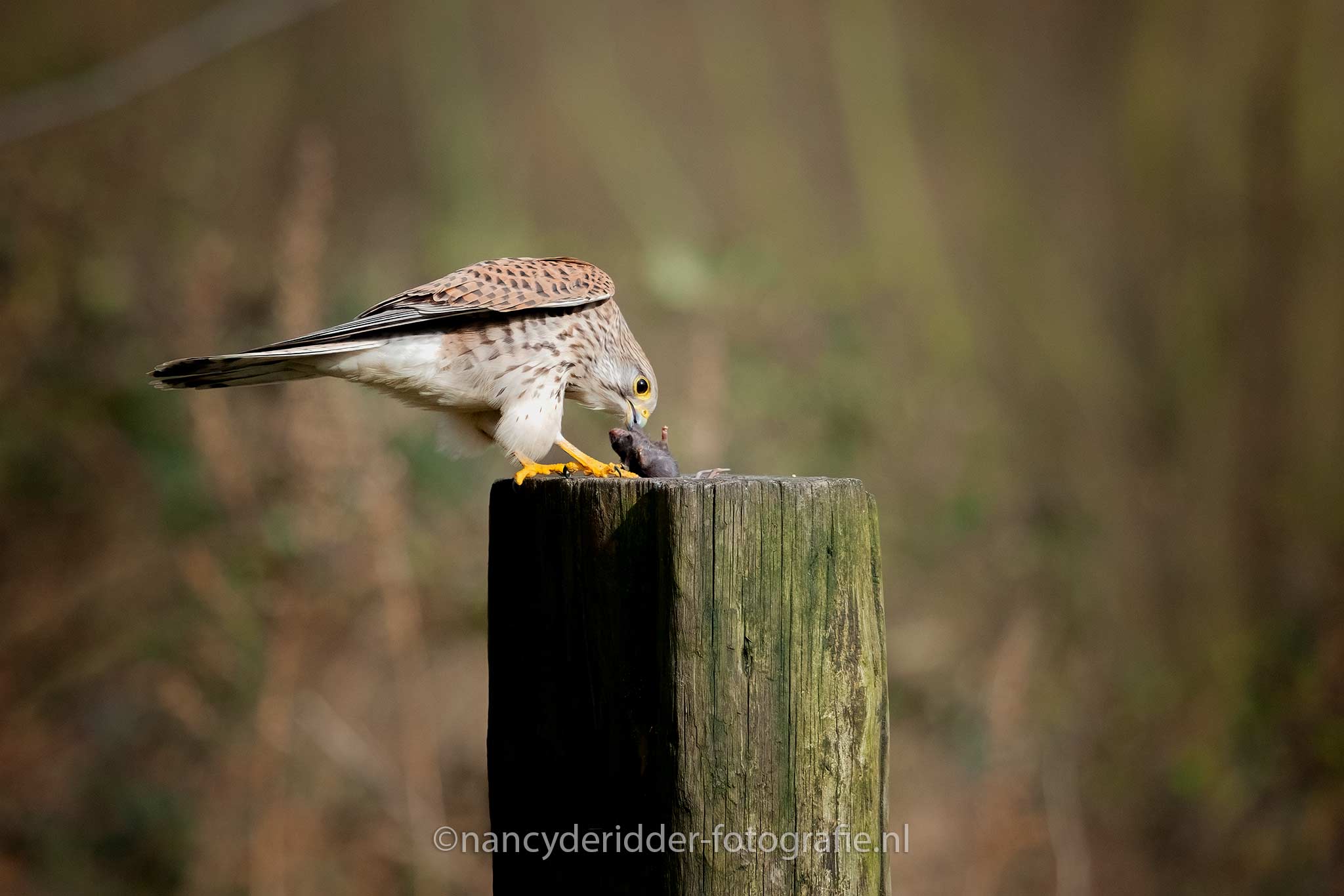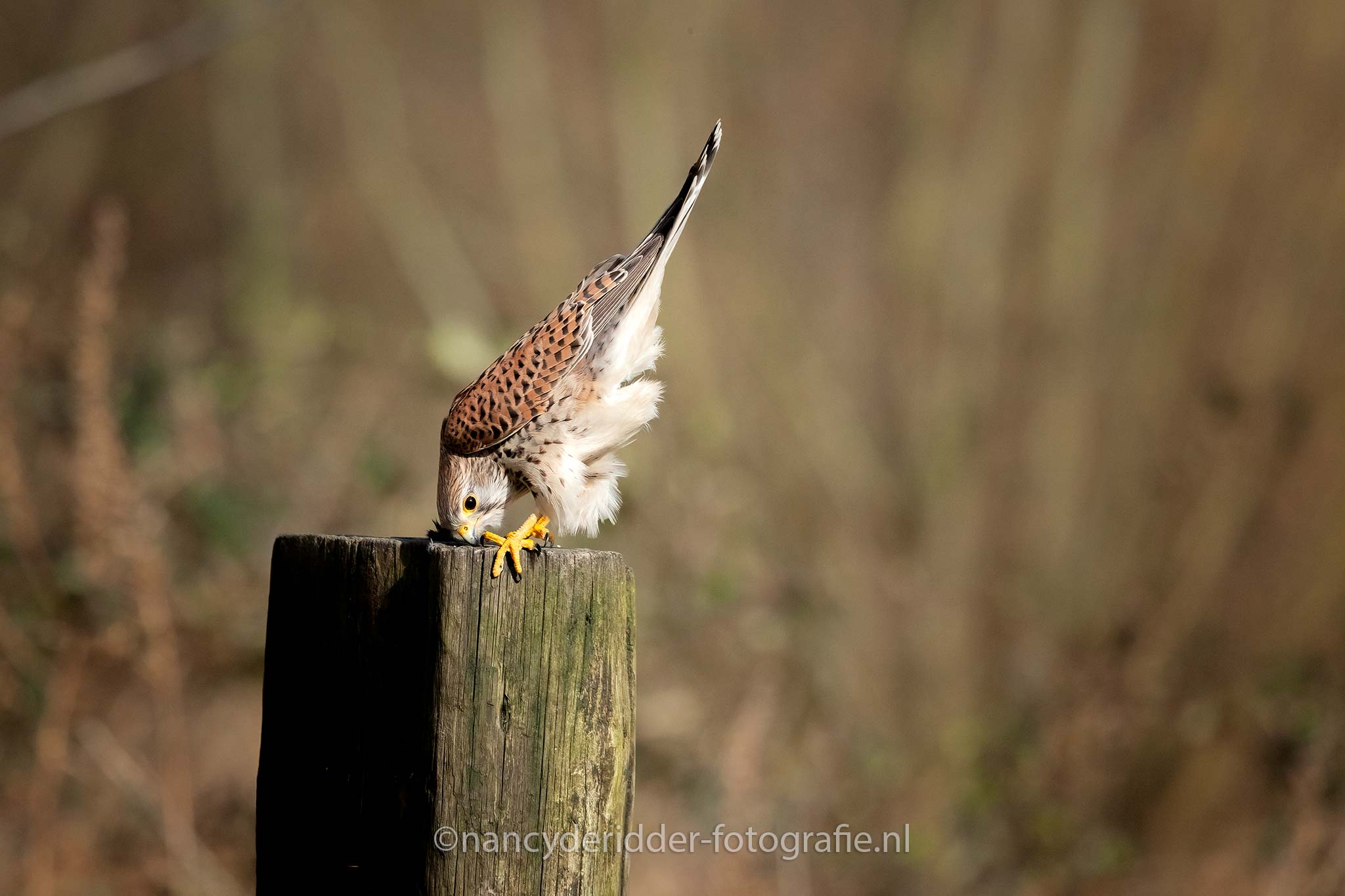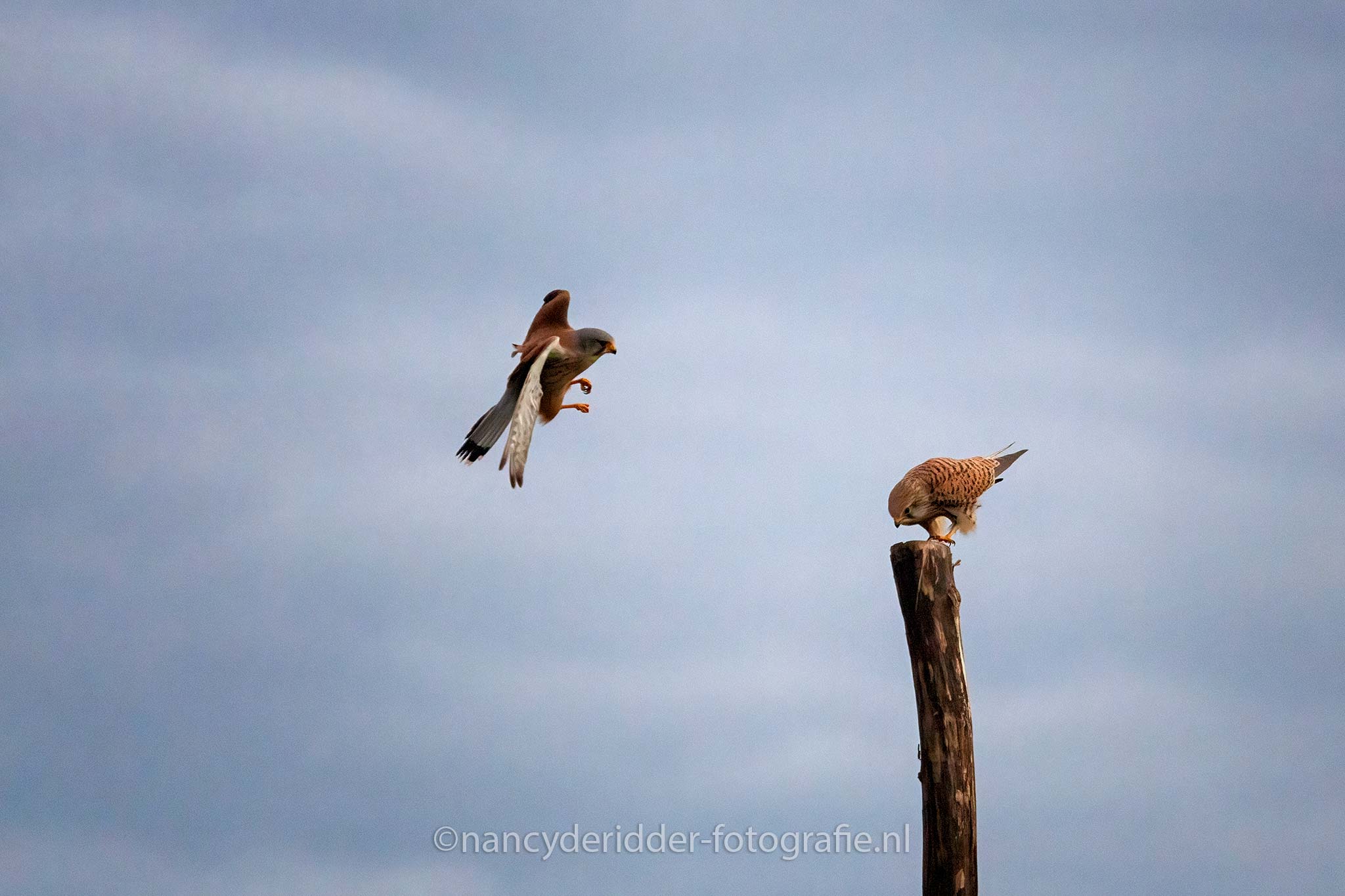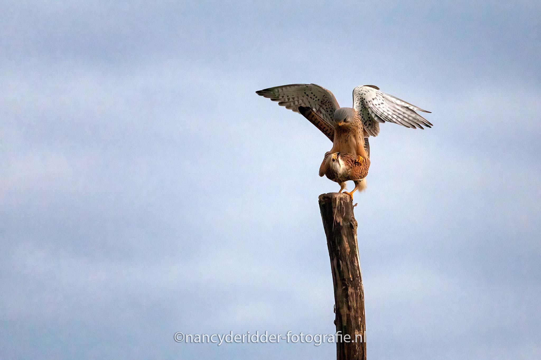 De torenvalken deden goed hun best en lieten zich van alle kanten bewonderen. De camera’s klikte volop. Helaas bleven beide op hun eigen paaltje zitten. Ja dat gaf natuurlijk weer keuze stress, want ja je kan met je camera maar focussen op 1 paal natuurlijk. Uiteindelijk vlogen ze beide weer weg en kon er weer rustig adem worden gehaald in de hut. Wat was dit gaaf, dit was al meer dan vorige keer in augustus, en het was nog vroeg dus dat beloofde nog wat voor de rest van de dag.