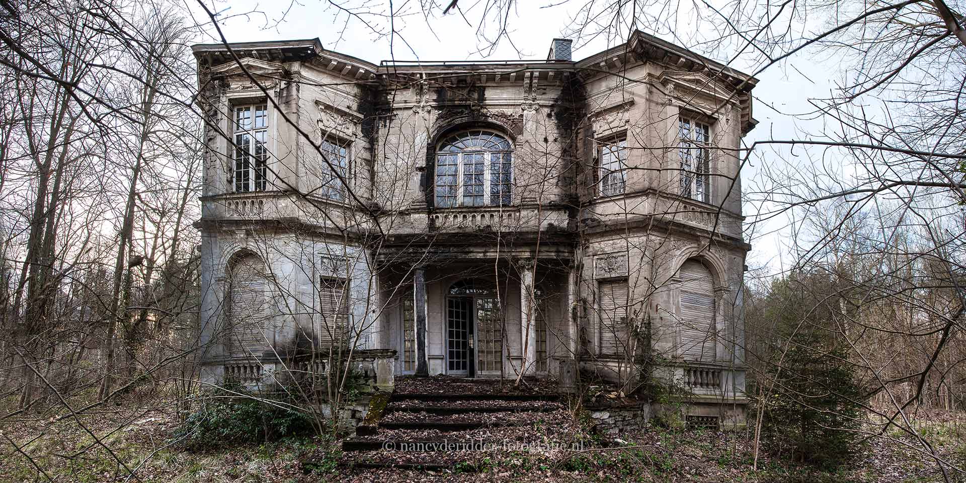 De villa is echter compleet verwoest en is echt niet veel meer van over. Dat de villa totaal verwoest is door de natuur is goed te zien op de foto hiernaast. Hierdoor maakt het voor Urbex fotografen natuurlijk super leuk om te fotograferen.