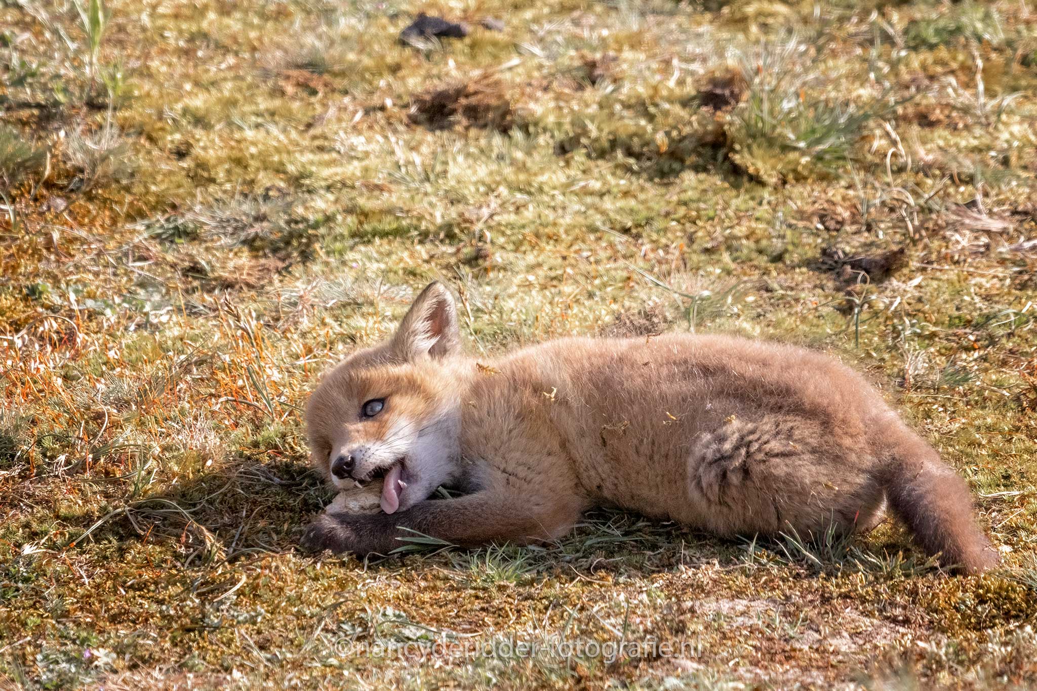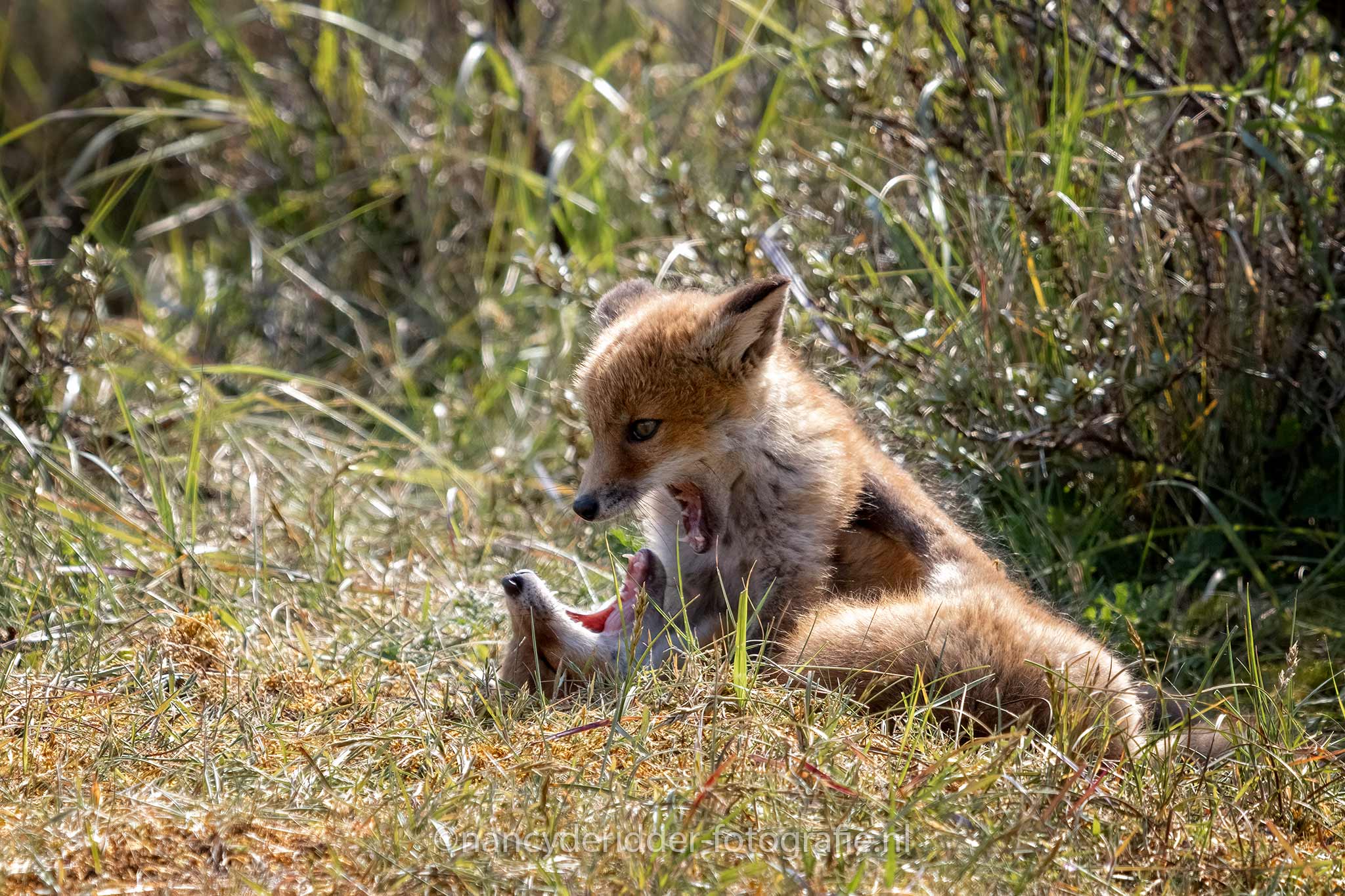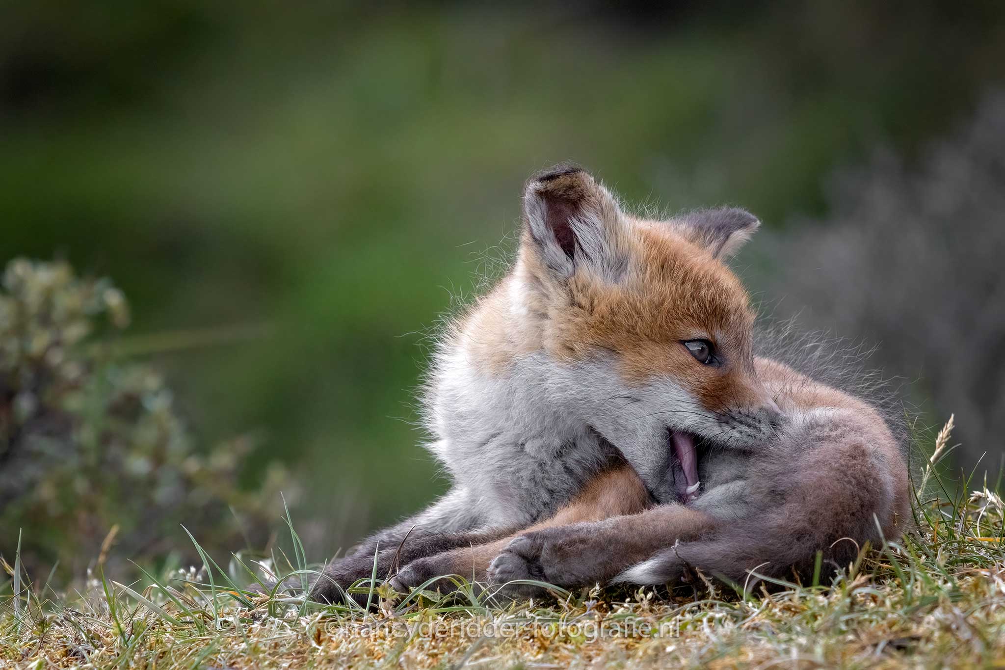 Al dat droge gras aan je pootjes gaat natuurlijk wel jeuken. Dan plof je gewoon even neer en bijt je jezelf even in je achterpoot om de jeuk te verhelpen. Het heeft zo zijn voordelen om een vosje te zijn hahaha
