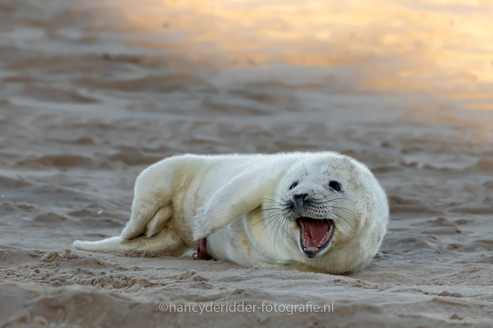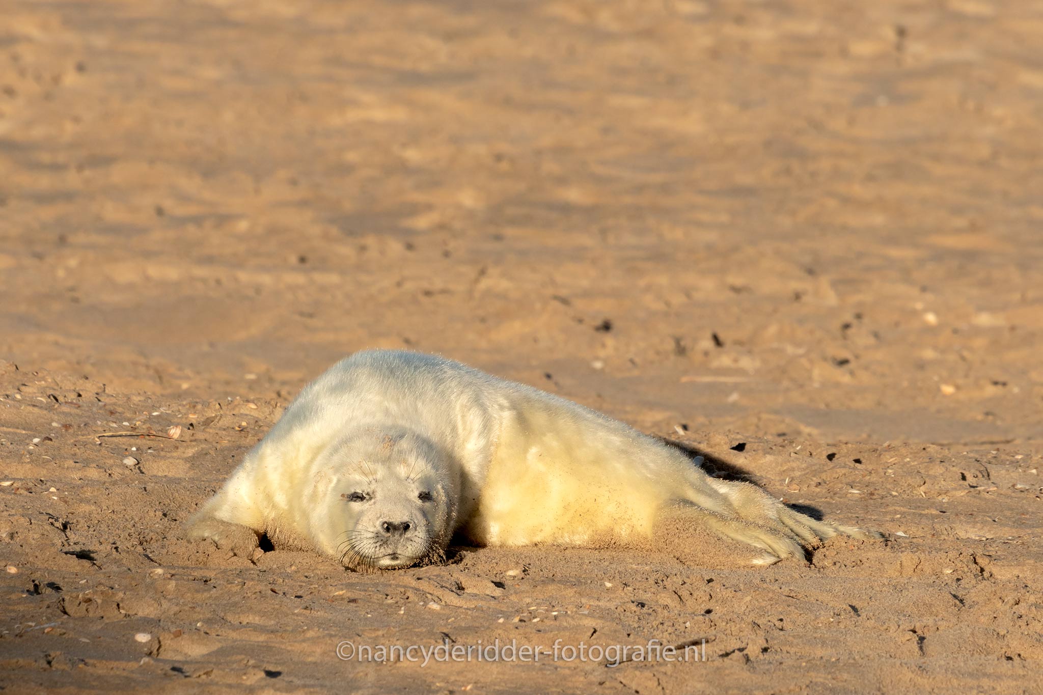 Na een gesprekje met de zeehonden strandwachter, geen idee of dit een echte naam is maargoed, kregen we wat meer informatie. De mooie zeehonden pup hier was 5 dagen oud. De navelstreng zit er nog aan en moet er vanzelf af vallen na verloop van tijd.