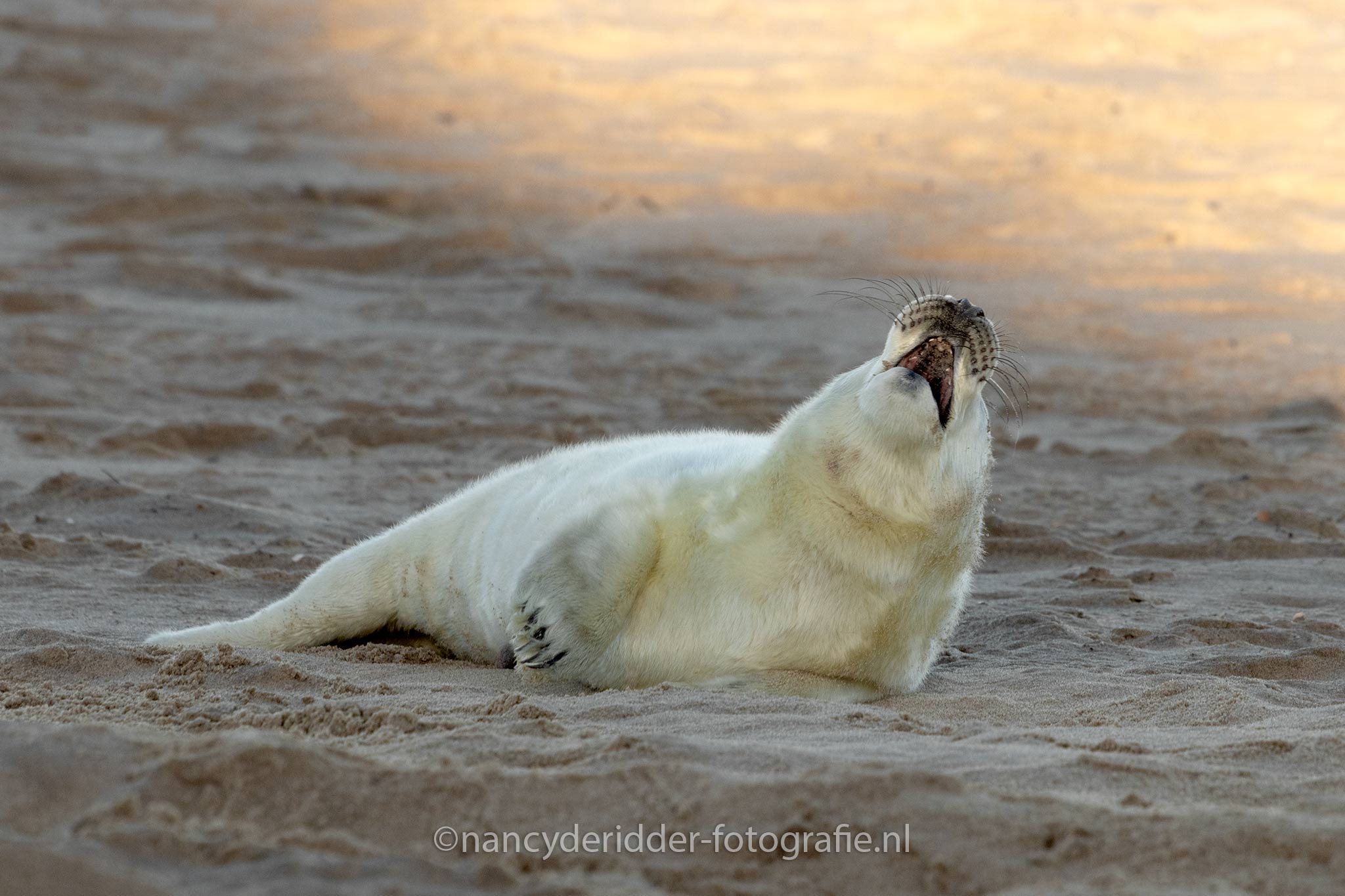 Na een uur of 2 begon de pup toch wel honger te krijgen, hij werd wat meer actief en riep om zijn moeder. Nouja, er kwam geluid uit, het wel bekende huilen van een zeehond.