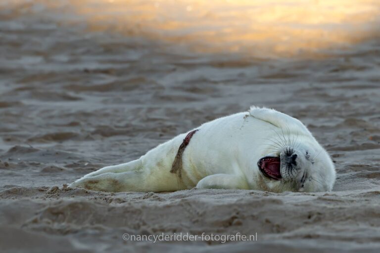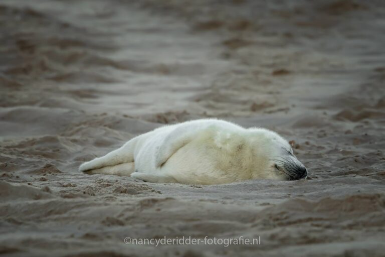 De zeehonden pup lag heerlijk te slapen, en wat was het al een schatje. Echt veel beweging zat er niet in, maar dat gaf niet….wat een genot om naar te kijken zeg. Afentoe werd hij, of misschien is het wel een zij, wakker. Gaapte wat om zich vervolgens weer om te draaien en verder te gaan slapen.