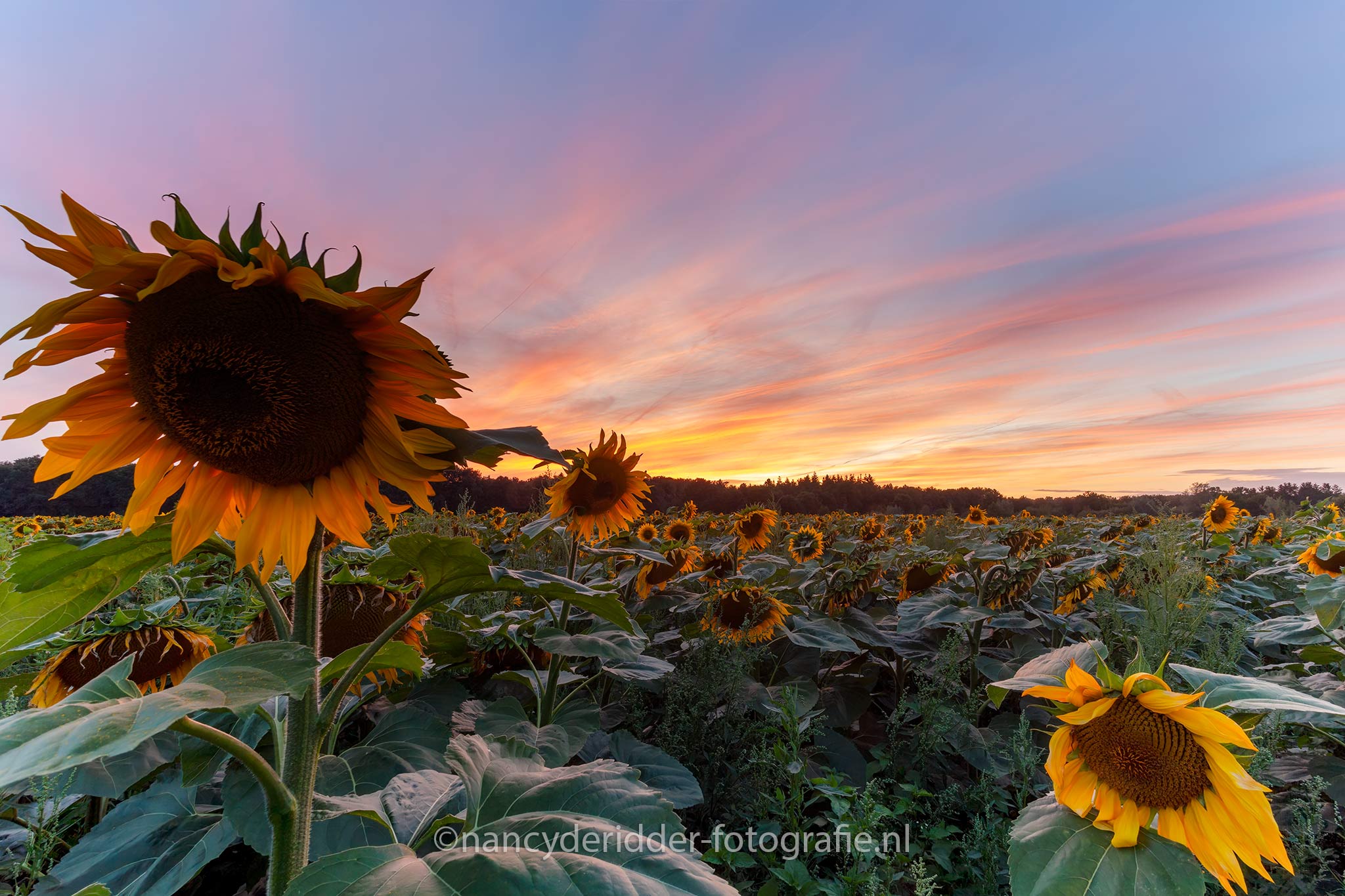 Zaterdag 12 augustus was het dan zo ver, het plan was om met een zonsondergang de zonnebloemen te fotograferen. Van tevoren had ik ook al uitgezocht of ze wel te fotograferen waren met een zonsondergang, of dat dit juist met een zonsopkomst moest. Dit was een makkelijk onderzoekje want ik hoefde maar 1 telefoontje te plegen naar de geitenboerderij en kreeg alle informatie die ik wilde.